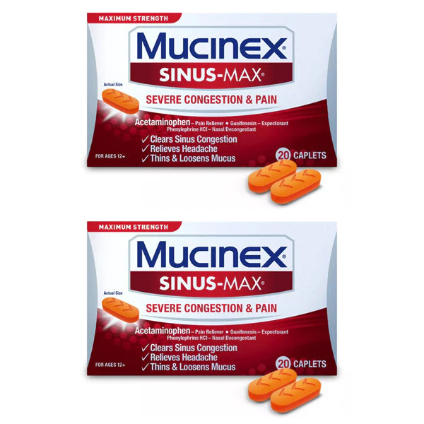 2 Pack - Mucinex Sinus-Max Severe Congestion Relief Caplets 20 Count Each