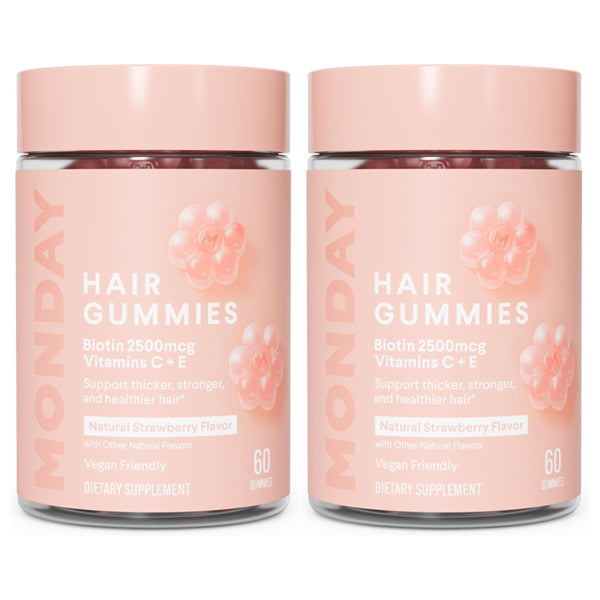 2 Pack - MONDAY HAIRCARE Hair Gummies with 2500 mcg Biotin Strawberry 60 Count