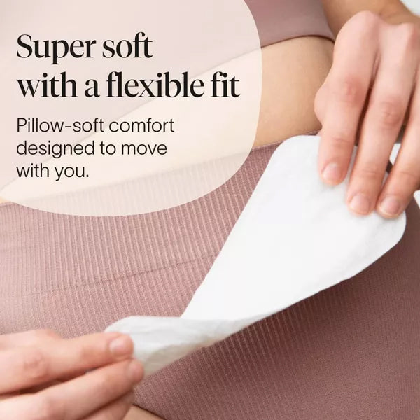 SUPER SOFT WITH A FLEXIBLE FIT. Pillow-soft comfort designed to move with you. Perfect for light days or as a backup on heavier days. Postpartum friendly.